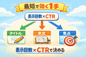 Search Consoleで表示回数が増えているのにCTRが伸びない時は、記事そのものが悪いというより、検索結果での「約束」と本文の「答え」がズレていることが多いです。検索してくれた読者は、タイトルを見て「これなら今の不安がほどけそう」と期待してクリックします。ところが本文の冒頭で答えにたどり着けなかったり、話が広がりすぎたりすると、そっと離れてしまいます。つらいですよね。でも、ここは読者ファーストで整えれば戻せます。Search Consoleの「ページ」を開き、対象記事の「クエリ」を見て、表示回数が多い言葉を1つだけ選びます。その言葉がタイトルの前半に自然に入っているか、冒頭200文字で悩みに触れているか、最初のH2で解決の道筋が示せているかを確認します。もし「寄り添う言葉」が足りないなら、冒頭に一文だけ足しましょう。「結果が出ない時期でも大丈夫」と書くだけで、読む理由が生まれます。大きく書き直す必要はありません。タイトルを少し寄せる、導入の一文を足す、見出しの順番を整える。この小さな積み重ねが、静かにクリックを増やしてくれます。
